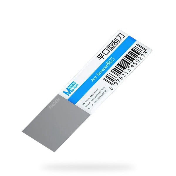 Categoría: Herramienta Modelos Compatibles: 1. Genérico Detalles: 1. Espátula rascador plano 2. Propósito: herramienta para desenganchar y raspar adhesivos durante reparaciones de pantallas, marcos y componentes planos sin dañar superficies 3. Características especiales: borde plano, filo suave, material antiestático, tamaño compacto para acceso estrecho