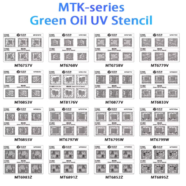 Categoría: Herramienta Modelos Compatibles: 1. Jtx 16 Gs-01 Detalles: 1. Stencil UV y malla de rebaling MTK 2. Propósito: facilitar el reballing de chips MTK durante reparaciones 3. Características especiales: cubre 16 modelos, orificios con tolerancias ajustadas para alineación precisa, material estable apto para uso en estaciones de UV y rebaling, montaje exacto para placas MTK GARANTÍA La garantía tiene vigencia de hasta 5 días después de recibir el producto. Es requisito indispensable que antes de instalar la pieza, realice una prueba con el equipo abierto, para determinar el correcto funcionamiento de ésta, sin levantar micas o sellos.