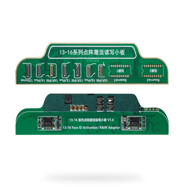 Categoría: Placa Adaptadora Modelos Compatibles: 1. iPhone 13 Pro Max 2. iPhone 14 Pro Max 3. iPhone 15 Pro Max 4. iPhone 16 Pro Max Detalles: 1. Tablilla adaptadora de lectura/escritura JCID 2. Propósito: lectura y escritura de datos del módulo Face ID durante reparaciones 3. Características especiales: conectores de alta precisión, montaje preciso, adaptación exacta para iPhone 13 Pro Max a 16 Pro Max GARANTÍA La garantía tiene vigencia de hasta 5 días después de recibir el producto. Es requisito indispensable que antes de instalar la pieza, realice una prueba con el equipo abierto, para determinar el correcto funcionamiento de ésta, sin levantar micas o sellos.